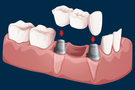 A bridge is a fixed dental restoration (a fixed dental prosthesis) used to replace a missing tooth (or several teeth) by joining an artificial tooth permanently to adjacent teeth or dental implants